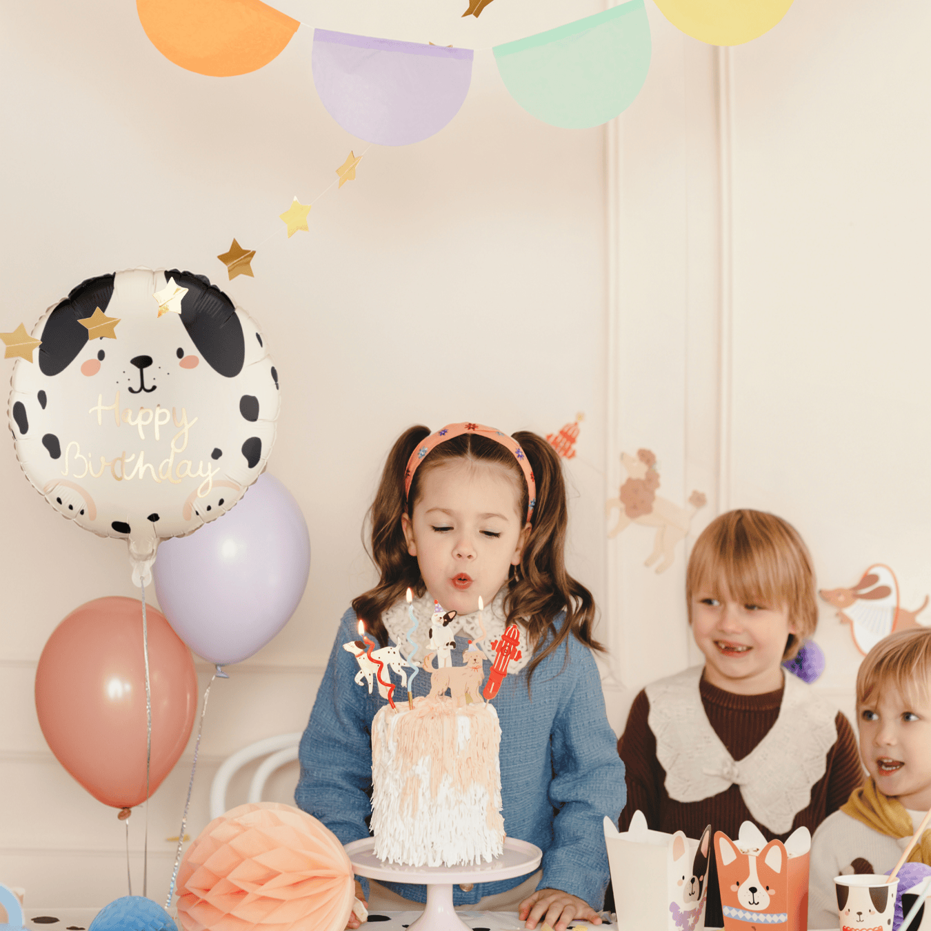 Fetch your way into any dog lover's birthday party with our Beige Dalmatian Happy Birthday Foil Balloon – a sweet and playful centrepiece for a dog themed birthday party.