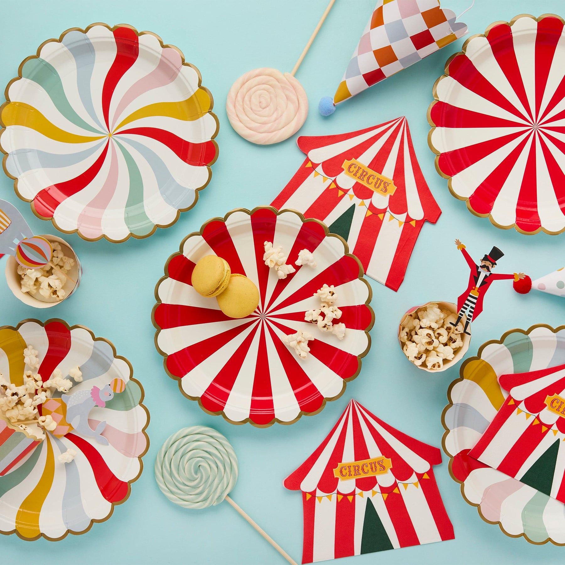 Create a charming circus party scene in a snap with these circus party food cups and cupcake picks.