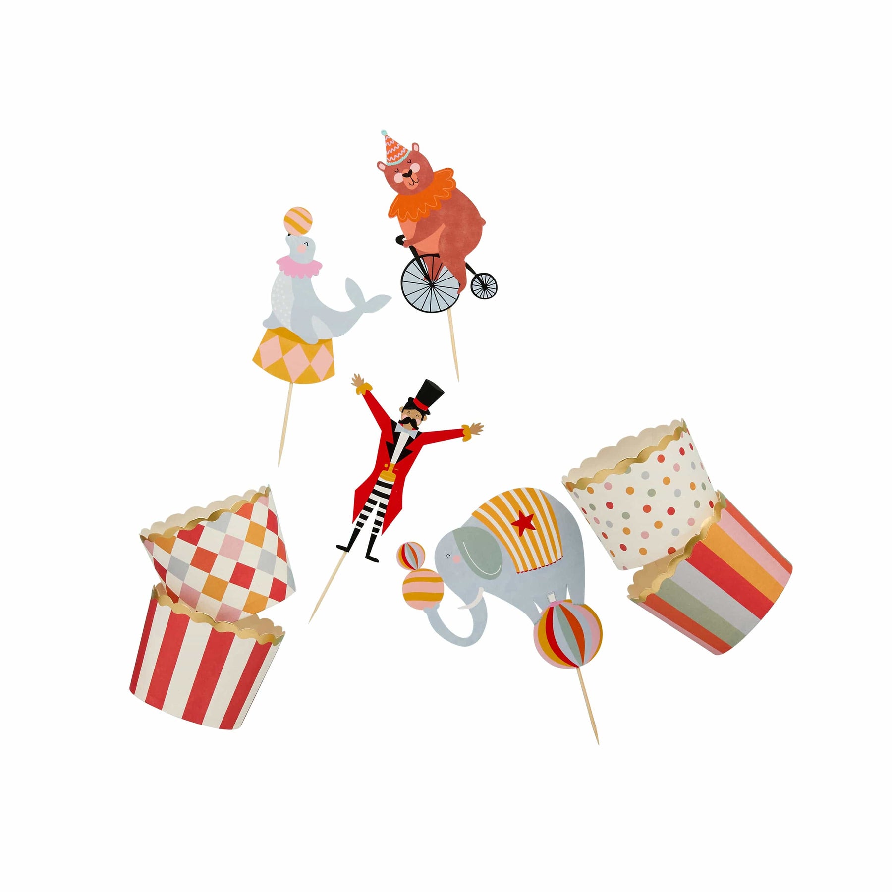Includes 12 food cups and 12 cupcake toppers featuring a whimsical cast of carnival characters, ensuring that your cupcake, popcorn or sweet snacks display is ready to take centre stage at a circus themed birthday party.