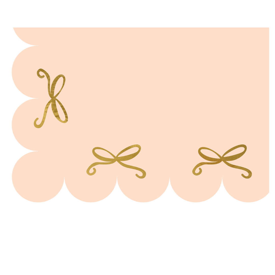 Designed in a soft pink shade with elegant gold bow detailing and scalloped edges, it adds a pretty touch to any party theme.