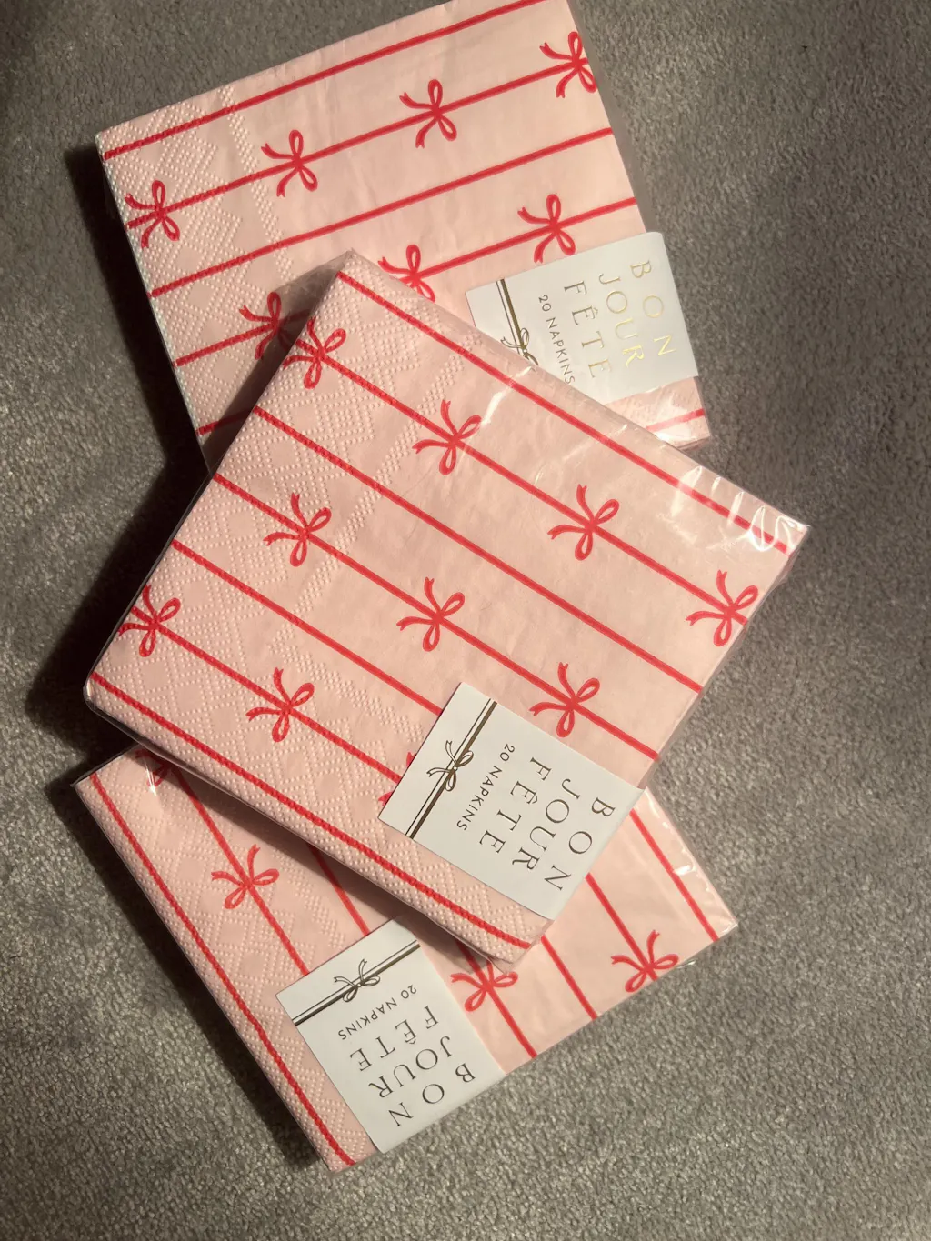 Add a hint of sweet sophistication to your party table with our Pink & Red Signature Bow Small Party Napkins from the Bonjour Fête Signature Line.